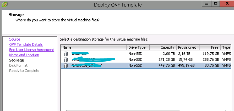 Yükleme yapacağımız datastore seçimini yaparak devam ediyoruz